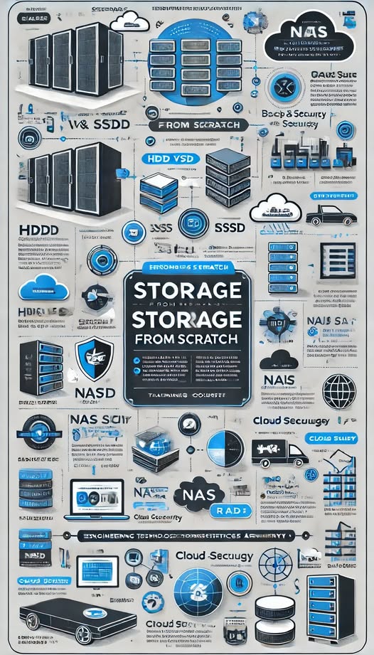 This course provides a comprehensive understanding of storage concepts and technologies, from fundamentals to advanced storage solutions. It covers different types of storage, access protocols, protection and recovery techniques, and cloud storage.
